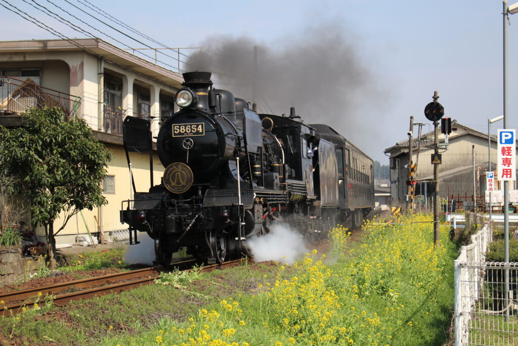 菜の花の中をSL人吉や、ななつ星が通っていたのを思い出しました。